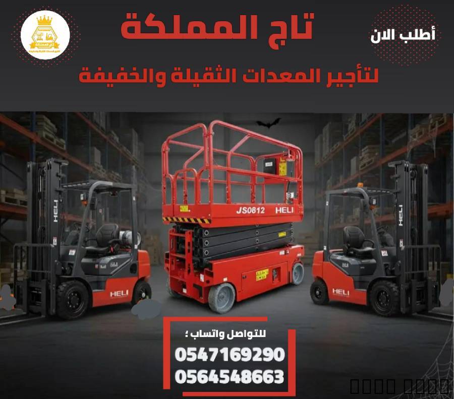 تاج المملكة لتأجير المعدات الثقيلة والخفيفة – الحل الأمثل لمشاريعك في المملكة | for Heavy & Light Equipment Rental – The Ultimate Solution for Your Projects in Saudi Arabia نحن في تاج المملكة نقدّم لك أسطولًا متكاملًا من المعدات الثقيلة والخفيفة، مجهّزة ومصانة بشكل دوري، لتخدم مشاريعك في جميع القطاعات: الإنشاءات، الصيانة، المستودعات، والمشاريع الصناعية الكبرى. At , we provide a complete fleet of heavy and light equipment, modern and well-maintained, to support contractors, companies, warehouses, and industrial projects across Saudi Arabia. المعدات المتوفرة | Available Equipment: - رافعات شوكية كهربائية وديزل (من 2 طن حتى 30 طن) | Forklifts (Electric & Diesel) – from 2 tons up to 30 tons - سيزر لفت كهربائي وديزل (من 6 متر حتى 20 متر) | Scissor Lifts (Electric & Diesel) – from 6m up to 20m - مان لفت مفصلي وتلسكوبي (من 10 متر حتى 20 متر) | Man Lifts (Articulated & Telescopic) – from 10m up to 20m - رافعات تلسكوبية (JCB – Merlo – Telehandler) | Telescopic Handlers (JCB – Merlo – Telehandler) - كرينات متحركة وهيدروليكية (حتى 100 طن وأكثر) | Mobile & Hydraulic Cranes – up to 100 tons and more - شيولات – بوكلينات – بلدوزرات – دنابر – جي سي بي | Loaders – Excavators – Bulldozers – Dumpers – JCB Machines - معدات خفيفة للمشاريع الداخلية والمستودعات | Light equipment for indoor projects and warehouses مميزات الخدمة | Service Advantages: - معدات حديثة وجاهزة للتشغيل | Modern, ready-to-use equipment - تغطية شاملة: الرياض – جدة – مكة – المدينة – الدمام | Coverage across Riyadh, Jeddah, Makkah, Madinah, Dammam - عقود مرنة يومية، أسبوعية، أو شهرية | Flexible contracts: daily, weekly, or monthly - أسعار تنافسية وخدمة احترافية | Competitive prices and professional service - تواصل مباشر عبر واتساب فقط | Direct communication via WhatsApp only تاج المملكة – نرفع كفاءة مشاريعك ونجهّز موقعك بأفضل المعدات | Smart Platf– Empowering your projects with the right equipment.