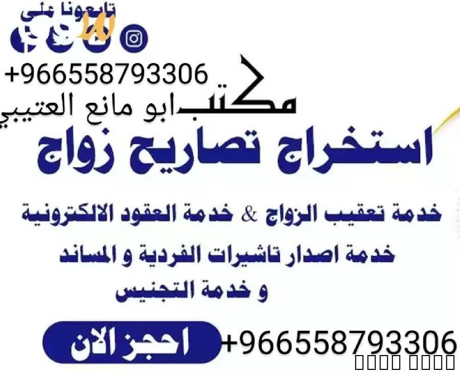 استخراج تصريح زواج ▪️أستخراج موافقة زواج▪️ استخراج تصريح زواج سعودي من اجنبية▪️ استخراج موافقة زواج مواطن من مقيمة ▪️استخراج موافقة زواج سعوديه من اجنبي ▪️ استخراج موافقة زواج مواطنة من مقيم▪️ استخراج تصريح زواج مقيم من مواطنة▪️استخراج الجنسية السعودية ▪️تخليص معاملات التجنيس▪️ شروط استخراج الجنسيه السعودية ▪️ تجنيس زوجة مواطن ▪️تجنيس زوج مواطنة▪️تجنيس اولدمواطنة▪️تجنيس مواليد المملكةاستخراج الجنسية السعودويه▪️تخليص معاملات التجنيس▪️ شروط استخراج الجنسيه السعودية ▪️ تجنيس زوجة مواطن ▪️تجنيس زوج مواطنة▪️تجنيس اولدمواطنة ▪️تجنيس مواليد المملكة((الدفع بعدالانجازتواصل واتساب مكتب ابومانع العتيبي))*0558793306*♻️https://api.whatsapp.com/send?phone=966558793306