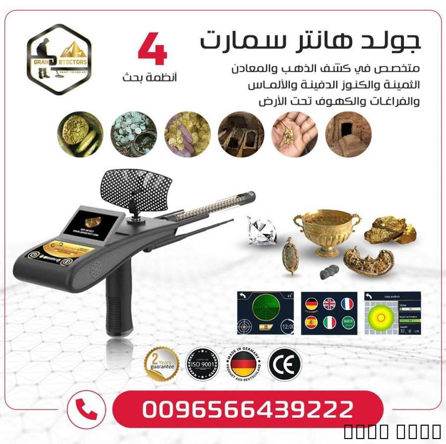 جهاز جولد هانتر سمارت من أفضل الصناعات الألمانية حاصل على شهادة CE الأوروبية طبقاً للمواصفات العالمية بالإضافة الى شهادة ISO 9001 الدولية طبقاً للمواصفات والمقاييس العالمية