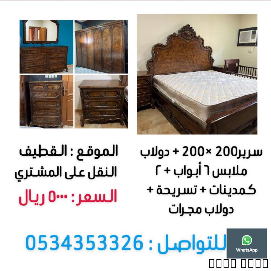 رفة مستعملة مكونة من ٦ قطع ( سرير + كومدينتين + دولاب ملابس + دولاب مجرات + تسريحة)
