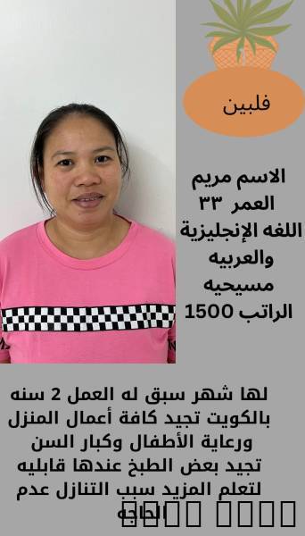 عملائنا الكرام يوجد لدينا ومطلوب عاملات منزليه طباخات تقوم بجميع أعمال المنزل ورعاية الأطفال وكبار السن