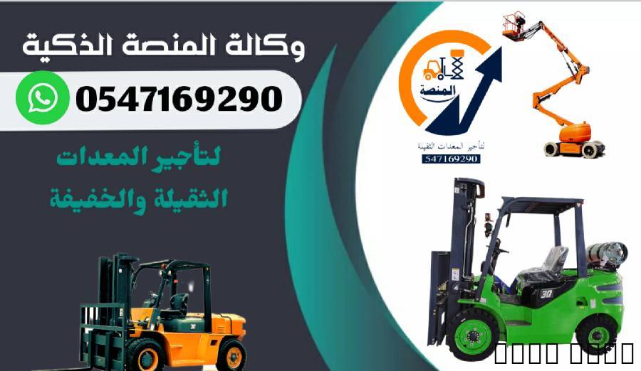 مؤسسة المنصة لتأجير المعدات الثقيلة والخفيفة – الرياضنحن في خدمة المشاريع الإنشائية والصناعية بكل ما يلزم من معدات حديثة وجاهزة للتشغيل.  أسطولنا يغطي كافة الاحتياجات، من أعمال الحفر والتحميل إلى الرفع والتشطيب، مع ضمان النظافة والصيانة المستمرة.المعدات المتوفرة:???? رافعات شوكية – سيزرلفت – مان لفت  ???? شيولات – حفارات – بوبكات  ???? قلابات – تريلات – كمبروسرات  ???? مولدات كهربائية – معدات رفع وتحميل وحفر وتشطيبمميزاتنا:✅ تأجير يومي، أسبوعي، وشهري حسب الطلب  ✅ جاهزية فورية وتوصيل سريع داخل الرياض  ✅ معدات نظيفة وصيانة دورية  ✅ أسعار منافسة وتعامل احترافي  ✅ التواصل حصري عبر واتساب فقط???? واتساب: 0547169290