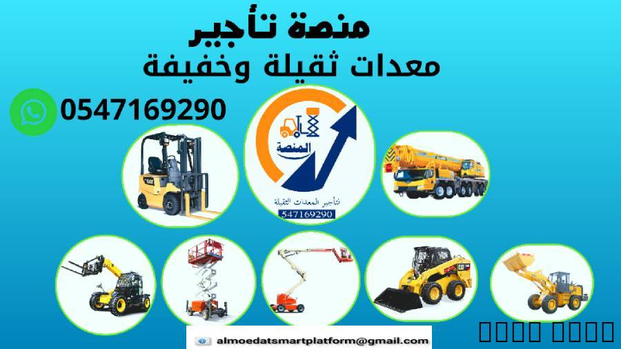 المنصة لتأجير المعدات الثقيلة والخفيفة – الرياض 2025نجهز موقعك بالمعدات المطلوبة، بجاهزية عالية وسرعة في التنفيذ. خدمة تأجير احترافية تغطي جميع أنواع المعدات الإنشائية والصناعية.المعدات المتوفرة: رافعات شوكية – سيزر لفت – مان لفت فوركلفت – بوكات – جي سي بي بوكلينات – بلدوزرات – شيولات كرينات – سطحات للنقل داخل وخارج الرياضنظام التأجير: يومي – أسبوعي – شهري حسب احتياج المشروع معدات نظيفة، مجربة، وصيانة دورية توصيل سريع داخل الرياض تواصل مباشر عبر واتساب فقطللتواصل والحجز: واتساب: 0547169290المنصة – جاهزون لتجهيز موقعك من أول يوم، بخدمة تعتمد عليها