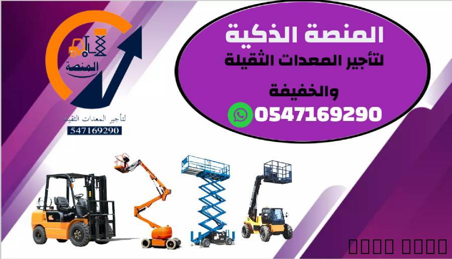 تأجير معدات ثقيلة وخفيفة في الرياض – مؤسسة المنصةللتواصل واتساب 0547169290مؤسسة المنصة تقدم خدمات تأجير متخصصة لجميع أنواع المعدات الثقيلة والخفيفة داخل مدينة الرياض. نحن نلبي احتياجات المشاريع الإنشائية والصناعية والتجارية، مع جاهزية فورية وصيانة دورية تضمن الأداء العالي في الموقع.المعدات المتوفرة:- رافعات شوكية ديزل وكهرباء - سيزرلفتات داخلية وخارجية - مان لفت بارتفاعات متعددة - شيولات، حفارات، بوبكات - قلابات، تريلات، سطحات - مولدات كهربائية، كمبروسرات - كرينات هيدروليكية ومتنقلة - معدات تحميل، رفع، تشطيب، حفر، نقلمزايا الخدمة:- تأجير يومي، أسبوعي، شهري حسب طبيعة المشروع - معدات حديثة ونظيفة بجاهزية تشغيل فورية - سرعة في التوصيل داخل الرياض - أسعار مدروسة وخدمة عملاء احترافية - التواصل حصري عبر واتساب فقط:تأجير معدات ثقيلة الرياض تأجير معدات خفيفة بالرياض Forklift Rental Riyadh Bobcat Rental Riyadh Crane Rental Riyadh Scissor Lift Rental Riyadh معدات مشاريع البناء بالرياض تأجير معدات إنشائية للمقاولين معدات جاهزة للتشغيل تأجير معدات رفع وتحميل وتشطيب