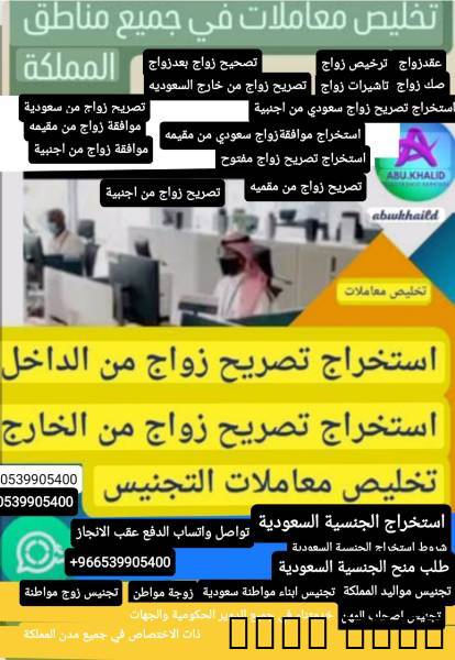 مكتب استخراج الجنسية السعودية نوفر لكم خدمات استخراج الجنسية السعودية∆خدمتنا تشمل استخراج الجنسية السعودية√تخليص معاملات التجنيس√شروط استخراج الجنسيه السعودية√تجنيس زوجة مواطن√تجنيس زوج مواطن√تجنيس اولدمواطنة سعوديه√تجنيس مواليد المملكة√تجنيس اصحاب المهن√تجنيس المقيمن0539905400أستخراج موافقة زواج√استخراج تصريح زواج سعودي من اجنبية√استخراج موافقة زواج مواطن من مقيمة√استخراج موافقة زواج ∆خدماتناتشمل √استخراج الجنسية السعودية √تخليص معاملات التجنيس √تجنيس زوجة مواطن √تجنيس زوج مواطنة √تجنيس ابناءمواطنة √تجنيس مواليد المملكة√ تجنيس اصحاب المهن√استخراج تصريح زواج √استخراج موافقة زواج √تصريح زواج مفتوح √تعديل بيانات زواج قديمة √استخراج تصريح زواج من خارج المملكة{{الدفع بعدالانجاز تواصل واتساب}}https://wa.me/966539905400