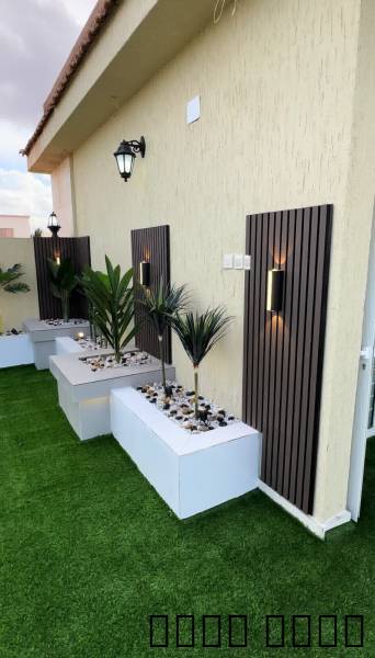 تنسيق الحدائق وتصميم الشلالات و النوافير والجلسات الخارجية وتوريد العشب الصناعي الارضى والجداري تركيب التكسيات الخشبية عمل احواض زراعة