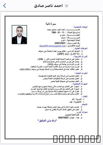 محاسب مصري خبره سنتين داخل المملكه العربيه السعوديه