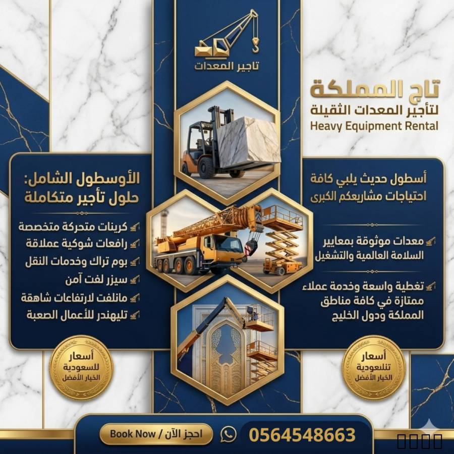 ⭐⭐⭐ تاج المملكة لتأجير المعدات الثقيلة والخفيفة ⭐???? 0564548663 ⭐⭐⭐