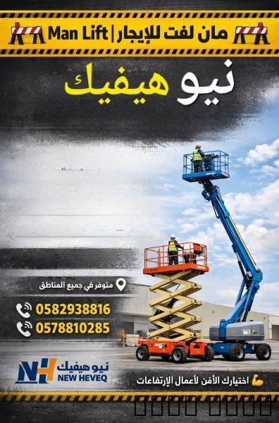 مان لفت للإيجار | Man Lift ????تعلن شركة نيو هيفيك لتأجير المعدات الثقيلة عن توفرمان لفت (رافعة أشخاص) للإيجار بأعلى معايير السلامة والجودة.???? ارتفاعات متعددة تناسب جميع الأعمال???? مثالية لأعمال الصيانة، الكهرباء، الإنارة، والواجهات???? معدات حديثة – صيانة دورية – جاهزية فورية⏱️ فترات التأجير:يومي • أسبوعي • شهري???? متوفر في جميع المناطق???? للتواصل:05829388160578810285نيو هيفيك – NEW HEVEQاختيارك الآمن لأعمال الارتفاعات ????