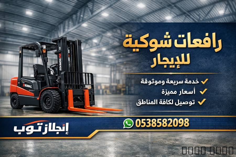 إنجاز توب لتأجير المعدات الثقيلة والخفيفة | ENJAZ TOP for Heavy & Light Equipment Rental"????️ إنجاز توب لتأجير المعدات الثقيلة والخفيفةENJAZ TOP for Heavy & Light Equipment Renta???? رافعات شوكية | Forklifts for Rentنوفر مجموعة متكاملة من الرافعات لتناسب جميع احتياجات المشاريع:We provide a full range of forklifts to suit all project needs:???? رافعة شوكية 3 طن – 3 Ton Forkliftمثالية للمستودعات والمواقع الصغيرةIdeal for warehouses and compact job sites???? رافعة شوكية 5 طن – 5 Ton Forkliftقوية وموثوقة للأعمال المتوسطةReliable and powerful for medium-duty work???? رافعة شوكية 7 طن – 7 Ton Forkliftأداء عالي للأعمال الشاقةHigh performance for heavy-duty operations???? رافعة شوكية 10 طن – 10 Ton Forkliftمصممة لرفع الأحمال الثقيلة بسهولةBuilt for handling large and heavy loads???? رافعة شوكية 16 طن – 16 Ton Forkliftالقوة القصوى للمشاريع الصناعية الكبرىMaximum power for large industrial projects✅ ديزل أو كهرباء – Diesel or Electric✅ تأجير يومي / أسبوعي / شهري – Daily, Weekly, Monthly Rental Options???? سيزر لفت | Scissor Lifts for Rentحلول آمنة وسهلة للوصول إلى الأماكن المرتفعةSafe and easy lifting solutions for elevated work????سيزرلفت scissorsleft 6 متر – 6m???? سيزرلفت 8 متر – 8m???? سيزرلفت 10 متر – 10m????سيزرلفت 12 متر – 12m????سيزرلفت 14 متر – 14m????سيزرلفت 16 متر – 16m✅ مناسب للأعمال الداخلية والخارجية – Ideal for indoor & outdoor jobs تليهاندر (مرلو – جي سي بي) | Telehandler (Merlo / JCB)قدرة رفع تصل إلى 17 متر – Lifting height up to 17mأداء قوي وثبات في جميع التضاريسStrong performance and stability on all terrains---مان لفت | Man Liftللعمل في الأماكن المرتفعة بأمان تامSafe and efficient access to high work areasارتفاعات تبدأ من 12 متر إلى 20 متر – Heights from 12m to 20m- نغطي جميع مناطق المملكة العربية السعوديةServing all regions of Saudi Arabia???? 0538582098???? معدات جاهزة – خدمة سريعة – أسعار منافسة???? Ready Equipment – Fast Service – Competitive Pric