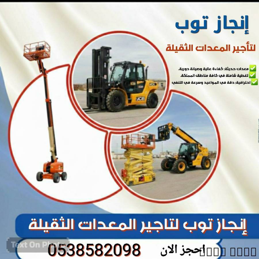 – رافعات شوكية | سيزرات | مان لفت – إنجاز توبإنجاز توب لتأجير المعدات الثقيلة والخفيفة ???? 0538582098???? رافعات شوكية للإيجار | Forklift Rentalرافعات شوكية للإيجار في السعودية | تأجير رافعات شوكية في الدمام | رافعات شوكية للإيجار في الرياض | رافعة شوكية للإيجار في جدة | تأجير رافعات شوكية في الجبيل | رافعات شوكية للإيجار في القطيف | رافعة شوكية للإيجار في القصيم | تأجير رافعات شوكية في تبوك |أحجام الرافعات المتوفرة:رافعة شوكية 1 طن للإيجار | رافعة شوكية 1.5 طن للإيجار | رافعة شوكية 2 طن للإيجار | رافعة شوكية 2.5 طن للإيجار | رافعة شوكية 3 طن للإيجار | رافعة شوكية 4 طن للإيجار | رافعة شوكية 5 طن للإيجار | رافعة شوكية 7 طن للإيجار | رافعة شوكية 10 طن للإيجار |حسب المدن:تأجير رافعة شوكية 1 طن في الدمام | تأجير رافعة شوكية 1.5 طن في الرياض | تأجير رافعة شوكية 2 طن في جدة | تأجير رافعة شوكية 2.5 طن في الجبيل | تأجير رافعة شوكية 3 طن في القطيف | تأجير رافعة شوكية 4 طن في الدمام | تأجير رافعة شوكية 5 طن في الرياض | تأجير رافعة شوكية 7 طن في جدة | تأجير رافعة شوكية 10 طن في السعودية |أنواع الفوركلفت:فوركلفت كهرباء للإيجار | فوركلفت ديزل للإيجار | فوركلفت غاز LPG للإيجار | فوركلفت داخلي | فوركلفت خارجي |---???? سيزرات للإيجار | Scissor Lifts Rentalسيزر لفت للإيجار في السعودية | تأجير سيزرات في الدمام | سيزر لفت للإيجار في الرياض | سيزر لفت للإيجار في جدة | تأجير سيزر لفت في الجبيل | سيزر لفت للإيجار في القطيف | سيزر لفت للإيجار في القصيم | سيزر لفت للإيجار في تبوك |ارتفاعات السيزرات المتوفرة:سيزر لفت 6 متر | سيزر لفت 8 متر | سيزر لفت 10 متر | سيزر لفت 12 متر | سيزر لفت 14 متر | سيزر لفت 16 متر |أنواع السيزرات:سيزر كهرباء | سيزر ديزل | سيزر داخلي | سيزر خارجي |---???? مان لفت للإيجار | Man Lift Rentalمان لفت للإيجار في السعودية | تأجير مان لفت في الدمام | مان لفت للإيجار في الرياض | مان لفت للإيجار في جدة | تأجير مان لفت في الجبيل | مان لفت للإيجار في القطيف | مان لفت للإيجار في القصيم | مان لفت للإيجار في تبوك |ارتفاعات المان لفت المتوفرة:مان لفت 12 متر | مان لفت 16 متر | مان لفت 20 متر | مان لفت 26 متر | مان لفت 32 متر |أنواع المان لفت:مان لفت مفصلي (Articulated Boom) | مان لفت تلسكوبي (Telescopic Boom) | مان لفت كهرباء | مان لفت ديزل |---???? معدات مناسبة لجميع الاستخدامات:رافعات شوكية للمستودعات | سيزرات للمصانع | مان لفت للمشاريع الإنشائية | معدات للموانئ | معدات للمخازن | معدات للتركيبات والصيانة |---???? خيارات التشغيل:معدات مع سائق | معدات بدون سائق |---???? مميزات إنجاز توب:معدات موديلات حديثة | فحص دوري | مطابقة لمعايير السلامة | تأجير يومي – شهري – سنوي | أفضل الأسعار | خدمة سريعة وتغطية جميع مناطق المملكة |---إنجاز توب لتأجير الرافعات الشوكية والسيزرات والمان لفت والمعدات الثقيلة والخفيفة???? 0538582098