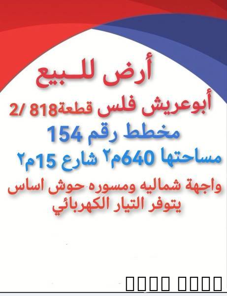 في فلس ابوعريش مخطط 154 رقمها 2/818 شارع 15م٢