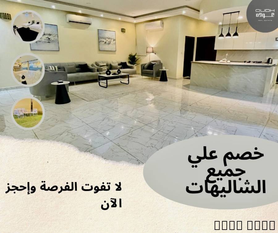 إحجز وجهتك معنا ولا تفوت الفرصة ????????مكانك المفضل عندنا ????أكبر مجموعة شاليهات متنوعة تختار منها ما يناسبك لقضاء أجمل الأوقات مع العائلة والأصدقاء????????????????????????????جميع الشاليهات (٢ غرفة ، صالة كبيرة ، مسبح كبير ، مطبخ ، ٢ حمام ، مجالس خارجية مع حمام ، جلسات بدوية او حديقة كبيرة ) ????جميع الشاليهات بها جراج خاص ????️????????جميع الشاليهات مطلة مباشرة علي مسجد كبير ???? وحديقة كبيرة ومنطقة ألعاب للأطفال???????????? للتفاصيل والحجز الرجاء الإتصال علي الرقم 0597344808