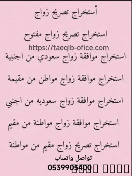 مكتب استخراج تصريح زواج استخراج تصريح زواج مفتوح أستخراج تصريح زواج مواطن من اجنبية تصريح زواج . تاشيرات زواج..صك زواج..عقدزواح.. ترخيص زواج.. تصحيح زواج بعدزواج استخراج موافقه زواح مرحباً بكم في مكتب استخراج تصاريح الزواجنوفر لكم خدمات استخراج تصاريح الزواج من المقيمين أو المواطنين بطريقة نظامية وسريعة، ونتابع لكم المعاملة من البداية حتى صدور التصريح بإذن الله.خدماتنا تشمل: استخراج تصاريح الزواج من خارج المملكة استخراج موافقة زواج مواطن من اجنبية والعكس اجنبي من سعوديه 0539905400صحيح زواج بعد زواجتعديل بيانات زواج قديماستشارات قانونية متعلقة تصاريح الزواج من المقيمين أو المواطنين بطريقة نظامية وسريعة، ونتابع لكم المعاملة من البداية حتى صدور التصريح بإذن الله.خدماتنا تشمل:استخراج الجنسية السعودية استخراج تصاريح الزواج من خارج المملكة استخراج موافقة زواج مواطن من اجنبية والعكس اجنبي من سعوديه صحيح زواج بعد زواجتعديل بيانات زواج قديماستشارات قانونية متعلقة بتصاريح الزواجاستخراج موافقه زواج✓استخراج موافقه زواج سعودي من اجنبيه✓استخراج موافقه زواج مواطن من مقيمه✓استخراج موافقه زواج سعوديه من أجنبي✓استخراج موافقه زواج مواطنه من اجنبي✓استخراج موافقه زواج مقيم من سعودية✓استخراج موافقه زواج اجنبي من سعوديه استخراج تصريح زواج أستخراج تصريح زواج مواطن من مقيمة تصريح زواج مفتوح.. تاشيرات زواج..صك زواج..عقدزواح.. ترخيص زواج.. تصحيح زواج بعدزواج استخراج تصريح زواج مقيم من مواطنة√0539905400استخراج الجنسية السعودية √تخليص معاملات التجنيس√شروط استخراج الجنسيه السعودية √ تجنيس زوجة مواطن √تجنيس زوج مواطنة√تجنيس اولدمواطنة √تجنيس مواليد المملكة√تجنيس اصحاب المهنمعقب ستخراج تصريح زواج سعودي من اجنبيهمعقب استخراج تصريح زواج سعودي من مقيمهمعقب استخرج موافقه زواج سعودي من اجنبيه مقيمهمعقب استخرج موافقه زواج سعودى من اجنبيه من خارج السعوديه.0539905400معقب استخرج موافقه زواج من اجنبيه مفتوحمعقب استخراج تصريح زواج من الاردنمعقب استخراج تصريح زواج من اليمن معقب استخراج تصريح زواج من مغربيه -استخراج تصريح زواج من لبنان -استخراج تصريح زواج من فلسطين -استخراج تصريح زواج من عمان -استخراج تصريح زواج من سوريا -استخراج تصريح زواج من الخارج- نستخرج موافقه زواج سعوديه من اجنبي مقيم غير مقيمتخليص معاملات الزواج من الاماره والدخليهالدفع بعد الانجازللتواصل و الاستفسار : واتسابhttps://api.whatsapp.com/send?phone=966539905400