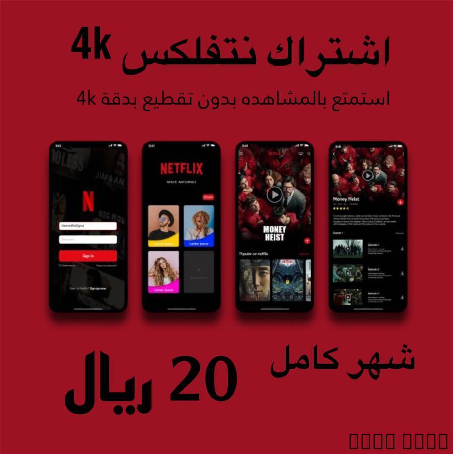اشتراكات نتفلكس بسعر ومزي بدقة 4kأفضل الباقات: شهر كامل : 20 ريال ٣شهور كامل: 55 ريال سنة + شهر مجاني 85 ريالضمان كامل مدة الاشتراك